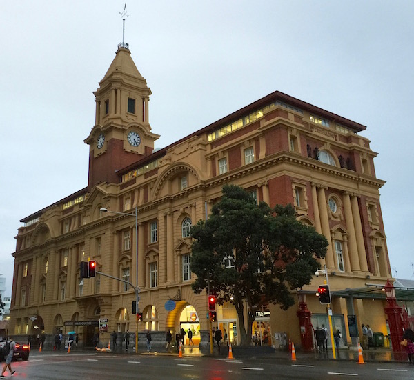 Caminando llegamos hasta el edificio Terminal de Ferry del Puerto de Auckland, comenzado a construir en el año 1909 y terminado en 1912. Este antiguo inmueble tiene un estilo eduardiano barroco. Aquí se venden los tickets de ferrocarriles que unen a Auckland, ciudad con North Shore y también Manukau y Waitakere.