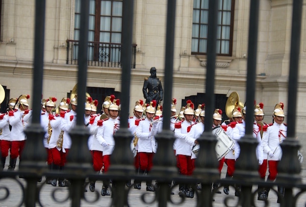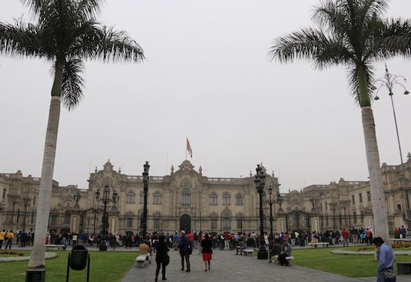 La Plaza de las Armas, o también llamada Plaza Mayor, tiene una superficie de 140 m², se sitúa en el centro de la ciudad, en el casco histórico de Lima. Rodeada de edificios importantes como la Catedral de Lima, el Palacio Arzobispal, el Club de la Unión, el Palacio Municipal y el Palacio del Gobierno de Perú. Visitamos la plaza al mediodía y tuvimos la oportunidad de ver el cambio de guardia en el Palacio del Gobernador, eso sí, claro desde fuera, no muy pegados a las vallas, se lleva acabó un gran dispositivo de seguridad y no dejan que se acerque la gente mucho a las rejas del palacio.