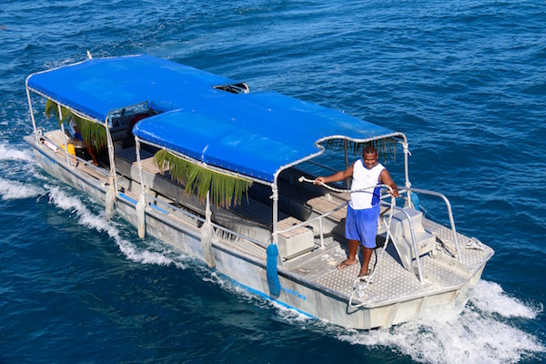 Al día siguiente nos levantamos, recogimos todo para ir al embarcadero del Puerto Denarau, donde tomamos el ferry South Sea Cruise 9:00 h que nos llevó hasta la isla Malolo, llegamos a las 11:00 h. El ticket del ferry (ida y vuelta) nos costó 112 € por persona. Se puede comprar a través de la página web: https://www.directferries.es/ferry_isla_beachcomber_denarau.htm o en el mismo embarcadero. Pudimos ver como la gente iba llena de comida y refresco para tomar el ferry, aunque habíamos leído que no se podía llevar más de una maleta por persona y no permitían pasar alimentos, allí nadie decía nada, se hacían los tontos, pues nada nosotros fuimos a comprar agua y un poco de comida para estos días en la isla. El ferry iba lleno, la gente se iba bajando y nosotros contemplando la belleza del lugar. Bueno, fuimos los últimos en bajarnos.