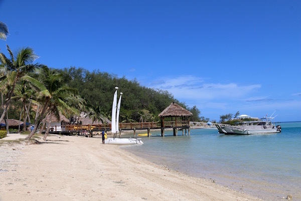 Al día siguiente nos levantamos, recogimos todo para ir al embarcadero del Puerto Denarau, donde tomamos el ferry South Sea Cruise 9:00 h que nos llevó hasta la isla Malolo, llegamos a las 11:00 h. El ticket del ferry (ida y vuelta) nos costó 112 € por persona. Se puede comprar a través de la página web: https://www.directferries.es/ferry_isla_beachcomber_denarau.htm o en el mismo embarcadero. Pudimos ver como la gente iba llena de comida y refresco para tomar el ferry, aunque habíamos leído que no se podía llevar más de una maleta por persona y no permitían pasar alimentos, allí nadie decía nada, se hacían los tontos, pues nada nosotros fuimos a comprar agua y un poco de comida para estos días en la isla. El ferry iba lleno, la gente se iba bajando y nosotros contemplando la belleza del lugar. Bueno, fuimos los últimos en bajarnos.