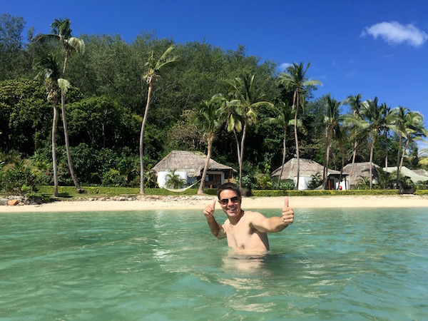 Nos trasladamos al Hotel Sofitel (hospedaje de cinco estrellas) en el que pasaríamos una noche. Situado en Beachfront, Denarau Island, Fiyi. Dejamos el equipaje en la habitación y nos fuimos para bañarnos en la playa del hotel, teníamos ganas de probar el agua del océano Pacífico.