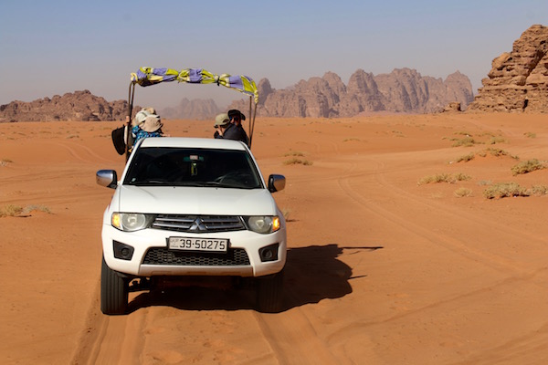El paseo en globo aerostático tiene una duración de 45 minutos, 1 h ó 2 h. Las cestas son para 3 personas como mínimo y máximo 5 ó en cestas de mínimo 6 personas y como máximo un total de 16. Donde podrás descubrir el desierto desde el aire, a forma de vista de pájaro. Hay diferentes precios van desde 130 dinares jordanos por persona (173,81 € aproximadamente). Nosotros realizamos la actividad de alquilar un 4×4 con conductor-guía, (un beduino) durante 2 h. Fue un recorrido donde vimos rocas esculpidas por el viento, el agua, durante miles de años, formando arcos naturales, cañones con diferentes formaciones, etc. La actividad nos costó 30 dinares jordanos por persona (39,93 € aproximadamente).