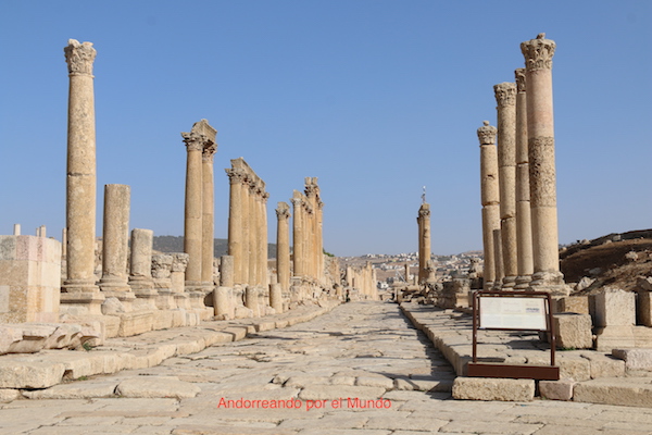 Nos levantamos, bajamos a desayunar y aún no estaba abierto el comedor, le preguntamos ¿a qué hora abría?, y nos dijo que a las 7:30 h. Pensamos nos vamos sin desayunar y ya nos compramos algo porque íbamos a peder el día. El chico de recepción muy amable nos abrió el comedor a las 7:00 h. Nos dijo que no había problema que los siguientes días nos ofrecerían los desayunos a las 7:00 h. Una vez que desayunamos salimos de Amman para dirigirnos hacia la ciudad de Jerash, localizada al norte de Amman, a unos 45 km, 1 h. aproximadamente de distancia. Para visitar las Ruinas de Jerash. La entrada nos costó 10 dinares jordanos por persona (13,38 € aproximadamente). Los locales tienen una tarifa más barata que los extranjeros. La entrada la compramos en el centro de visitantes, próximo a la puerta sur. En el centro de visitantes hay un tipo de mercado, llamémosles tiendas, donde vende desde refrescos hasta souvenirs. Los horarios de visitas a las ruinas cambian según la temporada. En invierno y otoño de 8:00 h a 16:00 h, en primavera de 8:00 h a 18:00 h, en verano de 8:00 h a 20:00 h. Durante el periodo de Ramadán de 8:00 h a 15:00 h. Los viernes y festivos de 9:00 h a 16:00 h. Para hacer la visita al completo al menos necesitarás 2 h y 30 minutos. Aquí os mostramos los lugares más interesantes, el lugar ofrece mucho más.