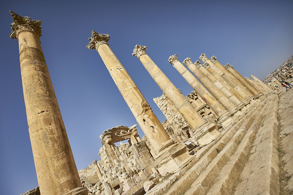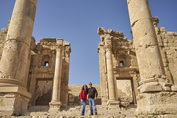La actual Jerash en el pasado conocida como Gérasa fue habitada desde la edad del bronce, pero su esplendor lo alcanzó con el emperador Adriano, cuando visitó Jerash entre los años 129 y 130 d.C. y mando construir el gran Arco de Adriano. Entre los siglos II y III d.C. se convirtió en un importante centro romano, formando parte de una de las ciudades de Decápolis. La ciudad se vio destruida por el terremoto que se produjo en el 749 d.C. Estuvo enterrada por la arena del desierto hasta el año 1920, cuando Ulrich Jasper Seetzen, un explorador alemán, la descubrió. Desde entonces y hasta hoy en día se continúan con las tareas de excavación. ¿Sabías qué fue una de las diez ciudades más importantes del Imperio Romano? Eso sí de Oriente Próximo. Os podemos decir que es una visita que realmente merece la pena hacerla, no es tan conocida como los siguientes lugares: Petra, Wadi Rum, el mar Muerto, pero a nosotros nos ha encantado esta ciudad.