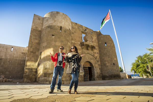 Nos dirigimos para visitar el Fuerte de Aqaba es un pequeño castillo que fue construido como una fortaleza cruzada, tuvo que ser restaurado por el sultán Al-Ashraf Qansuh al-Ghawri, en el siglo XVI. Está abierto todos los días, de mayo a octubre de 9:00 h a 18:00 h, de noviembre a abril de 9:00 h a 17:00 h. La entrada tiene un coste de 1 dinar jordano por persona (1,34 € aproximadamente).