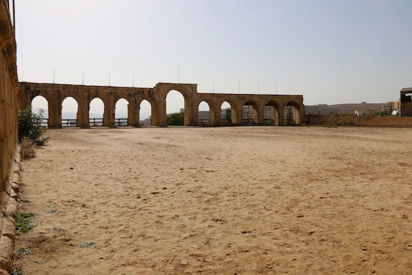 En el lado izquierdo, pudimos ver el Hipódromo construido entre los siglos I y III, su suelo en arena de 245 metros de longitud y 52 metros de ancho. Llegó a tener un aforo para 15000 personas. Este lugar era donde se realizaban las carreras de caballos, batallas de gladiadores, y utilizado en el siglo VII, para jugar al polo, etc. Antes en este sitio se hacían representaciones durante la visita de Jerash. Actualmente, se han dejado de hacer por la bajada del turismo.