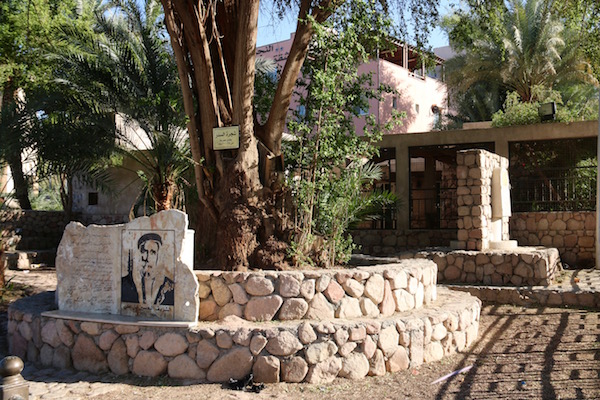 Enfrente vimos una placa con una escultura construida en 1918 y un árbol, es un homenaje a Al-Assad, también conocido como Al-Sit.