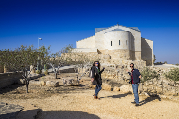 La primera Iglesia del Monte Nebo fue levantada a finales del siglo IV, para homenajear el lugar donde murió Moisés. Después de visitar está zona el Papa Juan Pablo II, en el año 2001, se ha convertido desde entonces en una importante zona de peregrinación para los cristianos. Hay un olivo sembrado que conmemora el acontecimiento. Dentro del templo pudimos ver una gran cantidad de mosaicos.