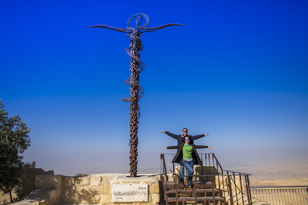 Llegamos hasta la zona de los miradores donde pudimos obtener unas vistas de toda la Tierra Prometida. En los días que no hay niebla se ve el mar Muerto o el valle de Jericó, Jerusalén, Belem, el monte de los Olivos. Nosotros no tuvimos tanta suerte, había niebla y no pudimos apreciar mucho. Lo importante de este lugar se encuentra en la Biblia en el antiguo testamento, en el libro del Deuteronomio en el capítulo 32. La Biblia, dice que aquí fue donde el profeta Moisés divisó la Tierra Prometida, a la que nunca llegaría. Hay un monumento dedicado a Moisés. Algunos dicen que el profeta está enterrado aquí, pero bueno en fin esto es una hipótesis, ya que no hay pruebas que lo demuestren.