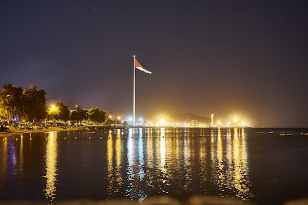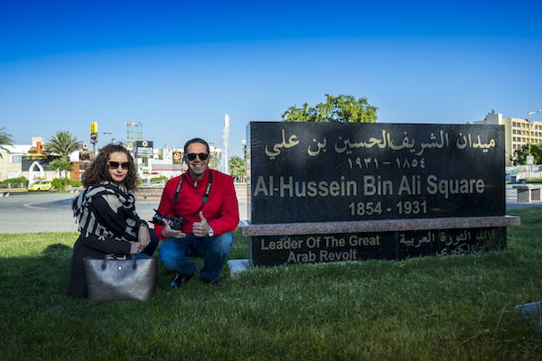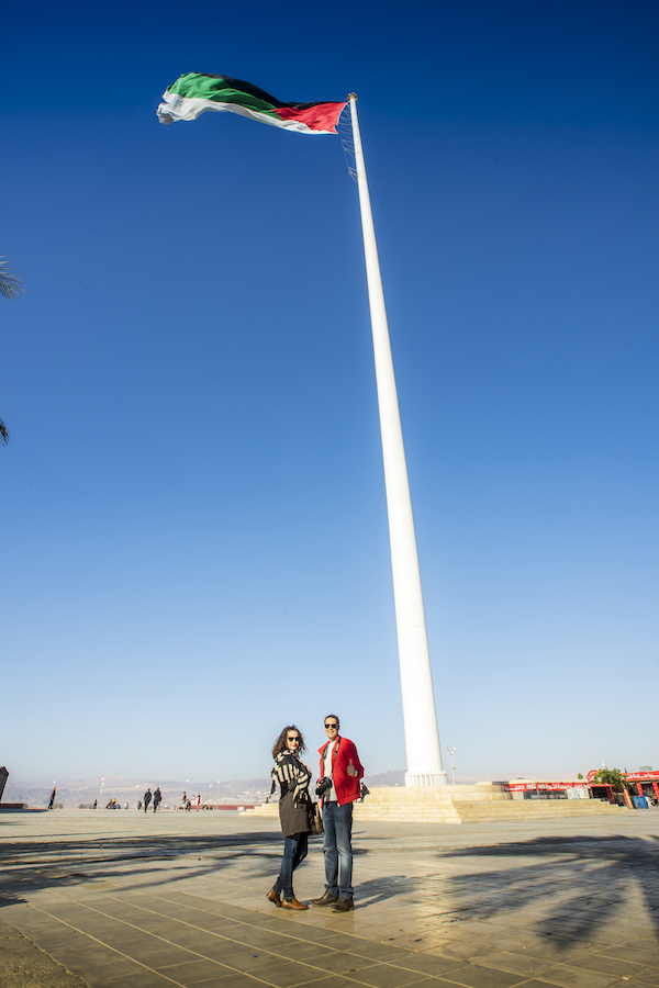La Corniche es un paseo marítimo en uno de sus extremos pudimos ver una enorme bandera del país, que se encuentra en la Plaza de la Revuelta Árabe. La bandera tiene 20×40 metros y está a 137 metros de altura, conmemora la gran revuelta árabe. También tocamos con las manos el agua de la Playa Corniche, estaba un poco fría, decidimos prescindir del baño.