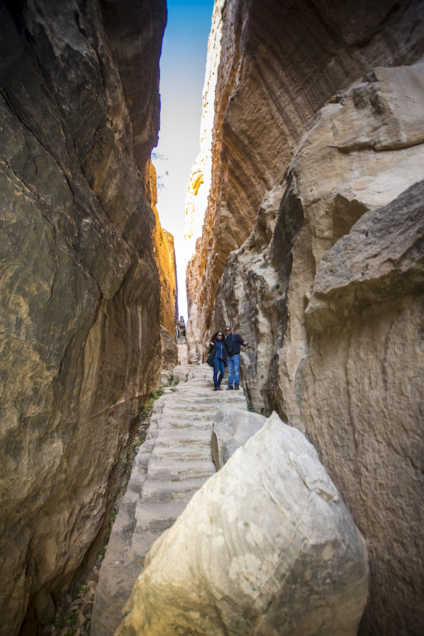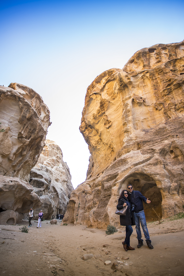 Al día siguiente bajamos a desayunar al comedor del hotel, una vez acabada la comida, hicimos el check-out y nos fuimos a visitar “La Pequeña Petra” se localiza a 15 km al norte de Petra. Al visitar el día de antes Petra, este lugar no nos impresionó mucho, pero el lugar tiene su encanto. Este desfiladero tiene unos 2 metros de ancho, es una ciudad tallada en roca por los nabateos. Donde pudimos ver la Puerta Falsa, el Siq de la pequeña Petra, Palacios tallados en piedra, vendedores ambulantes, etc. La entrada es gratuita.