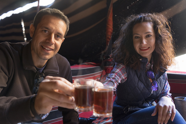 Tomamos un té en una jaima, acompañado de música tradicional jordana.