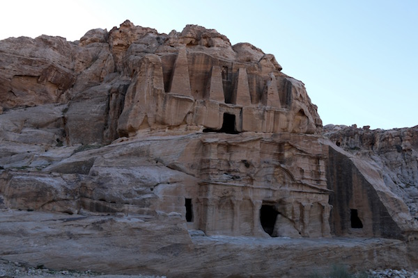 Una vez con la entrada comprada iniciamos un paseo desde la puerta de entrada en el centro de visitantes hasta el Desfiladero Siq aquí encontramos la Tumba del Obelisco fue hecha por los nabateos esculpiendo en piedra en el siglo I d.C. Sobre estas tumbas se puede ver que hay cuatro pirámides (nafesh) y un nicho con una estatua esculpida, que hace representación a la sepultura de cinco personas enterradas en el lugar. Debajo está el Triclinio, un salón de festejos de la época.