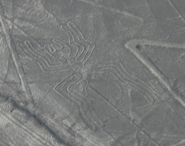 La siguiente era la araña situada en el costado de un gran rectángulo, mide 46 metros. ¿Sabíais qué en el año 1946 fue la primera figura que descubrió María Reiche, la araña?