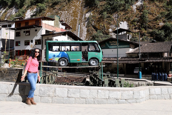 Nos fuimos a hacer la cola para tomar el autobús, que nos haría el descenso hasta el pueblo de Machu Picchu. Una vez abajo andorreamos un poquito por el pueblo, aunque no es muy grande, pero tiene su encanto. Tomamos unas fotografías.