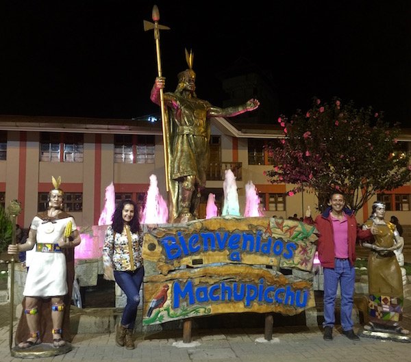 Recogimos nuestro poco equipaje que llevábamos, nos vino bien, dejar el resto en la ciudad de Cusco y no tener que ir tirando de todo, a estas alturas de nuestra vuelta al mundo, se agradecía. Nos fuimos andando hasta donde teníamos el Hotel Hatun Inti Boutique Machupicchu, hospedaje de tres estrellas, aquí pasaríamos una noche. El teléfono es: +5184234312. La dirección es Aguas Calientes. Salimos a explorar el pequeño pueblo y a cenar, que estaba por cierto plagado de gente. Seguro que mucha gente que nos cruzamos por el pueblo visitarían al día siguiente el Santuario de Machu Picchu. Desde la ciudad de Cusco, es donde hemos empezado a ver más concentración de viajeros y turistas, que en el resto de itinerario que hemos llevado acabó por Perú. Nos fuimos hasta la Plaza Manco Capac, en el centro hay una fuente con la escultura del inca Pachacuteq. Alrededor hay bares, restaurantes, tiendas, etc.