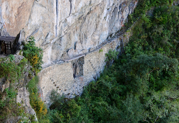 Continuamos el camino hasta llegar al puente inka. Hay que tener cuidado, el camino tiene muchos desniveles, zonas muy estrechas que pueden resultar peligroso. Recomendamos que para visitar Machu Picchu hay que llevar unos zapatos cómodos y que nos resbalen, nosotros solemos utilizar botas de montaña, no son los zapatos más bonitos, pero son los más cómodos, no resbalan y son seguros para caminar.