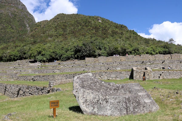 La roca ceremonial es una gran piedra que representa la silueta de un conjunto de montañas o una montaña. Se encuentra en el camino que lleva hasta el templo Huayna Picchu y al templo de la Luna.