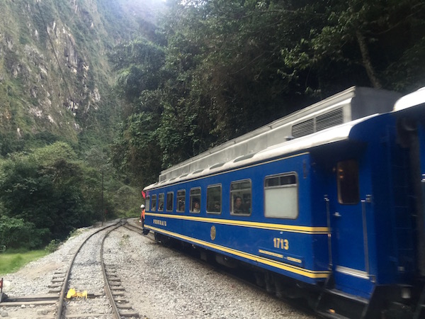 Llegamos a pueblo de Machu Picchu procedente del tren Perú Rail, saliendo de la estación de ferrocarril de Ollantaytambo. Fue un trayecto de 1 h y 30 minutos aproximadamente. Donde fuimos contemplando un maravillo paisaje lleno de vegetación que nos ofrecía el lugar. El ticket de tren ida+vuelta nos costó 132 dólares americanos por persona (117,68 € aproximadamente).