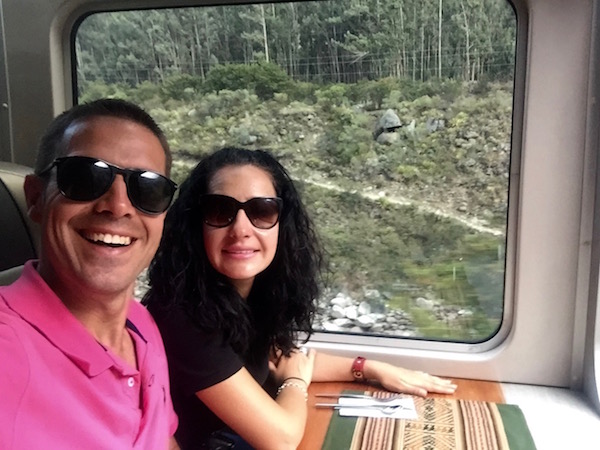 Nos fuimos hasta la estación de tren para coger uno con destino a Aguas Calientes. Salía las 15:37 h, pero nos fuimos un rato antes para pasar el control y estar allí. Nosotros comparamos los tickets del tren a través de internet en la página web: www.perurail.com Pagamos 56 dólares americanos por persona para ida (50,39 € aproximadamente) y vuelta 76 dólares americanos por persona (68,38 € aprox.) El trayecto de ida y vuelta de una persona nos costó 132 dólares americanos (118,76 € aproximadamente) Hay diferentes tarifas, horarios, etc. Os aconsejamos que lo compréis con tiempo, no lo dejéis para última hora. El trayecto en tren tiene una duración de 1 h y 30 minutos aproximadamente. El tren por su recorrido te va ofreciendo unas magníficas vistas llenas de naturaleza.