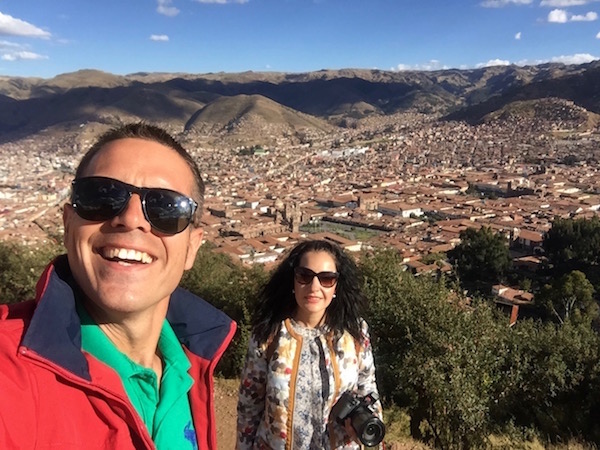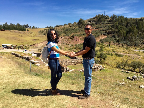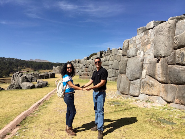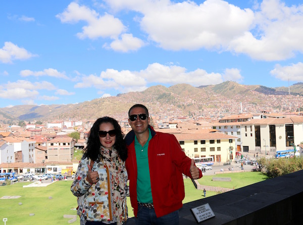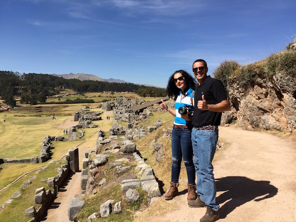 Nos estábamos achicharrando con el sol, miramos el reloj y habíamos perdido la noción del tiempo, eran ya las 15:16 h No sé qué nos pasa, pero cuando visitamos zonas arqueológicas se nos va el tiempo. Comenzamos a bajar hasta llegar a la ciudad de Cusco, una vez ya en la Plaza de Armas, donde almorzamos unas pizzas. Casi el restaurante cierra con nosotros, fuimos los últimos en entrar. Bueno, es cierto que los peruanos son una gente muy amable, respetuosa, son personas que no se enfadan por nada, muy alegres y serviciales. A nosotros realmente nos hicieron pasar unos días increíbles en este país. En esta vuelta al mundo fue el primer país que visitamos en el que nos hablan en español, eso nos hizo sentirnos como en casa.