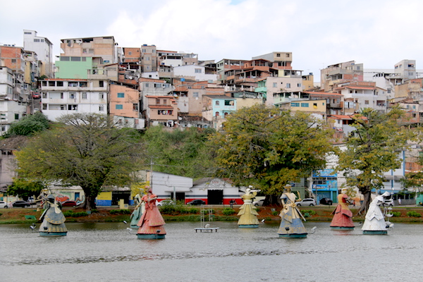 Contemplamos el Dique do Tororó. En el barrio de Tororó hay un manantial natural donde se encuentran las figuras de Orixás.