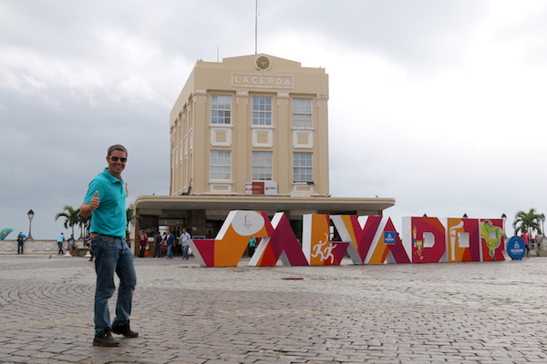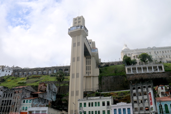 Nos dirigimos hasta el Elevador Lacerda, fue inaugurado en el año 1873, tiene 72 metros de altura, este elevador fue diseñado y construido por Antonio Francisco de Lacerda. Los cuatro elevadores sirven para conectar la ciudad alta con la ciudad baja. El ticket tiene un coste de 0,10 reales brasileños por persona (0,03 € aproximadamente). Cada trayecto tiene una duración de 22 segundos aproximadamente, transportando un total de 128 personas.