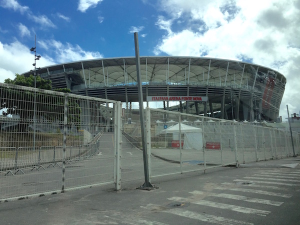 Justo enfrente está el Estadio Itaipava Arena Fonte Nova, fue inaugurado en el año 1951, es un estadio de futbol que pertenece al gobierno del estado de Bahía. Ha sido restaurando en varias ocasiones y tiene una capacidad para 55000 espectadores. Cuando nosotros visitamos la ciudad de Salvador de Bahía, el estadio estaba cerrado al público, por los Juegos Olímpicos 2016. Se encuentra en Ladeira da Fonte das Pedras, s/n.