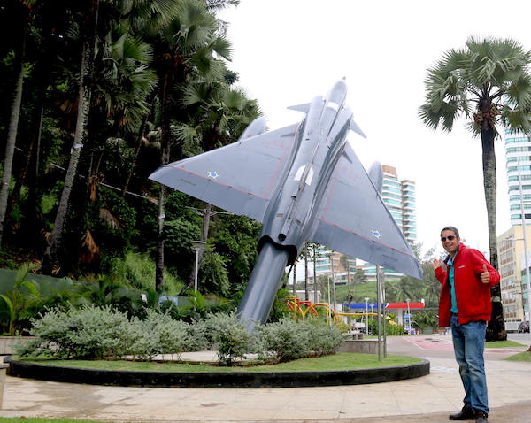 Salimos caminando del hotel por la acera de la calle hasta llegar al Monumento Mirage. En la Plaza Orugan, en el año 2005, se instaló un avión de combate Mirage III que tuvo una trayectoria de más de 67000 horas de vuelo en defensa del área brasileña, concretamente en la meseta central. Este fue colocado en el lugar como homenaje y para recordar la historia de las fuerzas aéreas brasileñas, la FAB.