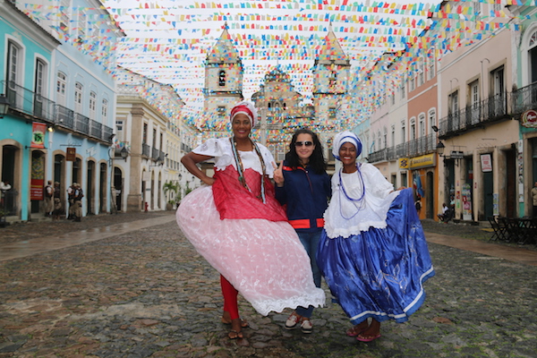 Una vez terminada la comida salimos del restaurante y nos aparecieron unas chicas vestidas con el traje típico de Bahianas, nos pidieron hacerse una fotografías con nosotros y que les diéramos una propina, yo (Elisabeth) me hice unas fotografías con ellas. El día de antes las vimos por la zona, se habían quedado con nuestras caras, nos dijeron cuidaros chicos cuando salgáis de las zonas turísticas, por favor, guardar la cámara de fotos. Es peligroso, hay muchos robos en la zona.