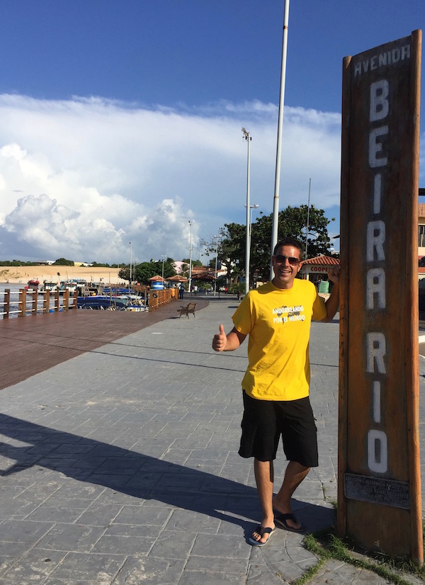 Estábamos tomando el sol en una hamaca, cuando de repente nos aparecen dos policías, con chalecos antibalas y ametralladoras, se acercan hasta nosotros. Nos comenzaron a hablar en portugués. Nosotros les dijimos, lo sentimos, no os entendemos, no hablamos portugués. Empezamos a hablarle en inglés, pero nada ellos siguieron hablando en portugués nos dijeron (esperar por vocee de volta aquí ágora). Esto, si lo entendimos nos quisieron decir, esperaros aquí que ahora volvemos. Nos quedamos un poco serios, mirándonos uno al otro. Nos preguntábamos, ¿Qué hemos hecho ahora nosotros? Regresaron los policías, cada uno con una porción de sandía, habían estado comiendo más allá y le había sobrado. Aquí, en este país no se tira nada, lo que sobra se ofrecen a las personas o animales. Nosotros, encantados, nos comimos las porciones de sandías. Por cierto, estaba riquísima y con la calor que hacía no venía nada mal.