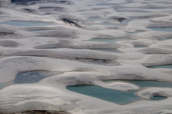 Despegamos, del Aeropuerto de Barreirinhas, con la puerta abierta del piloto, es la primera vez que vemos esto. Una vez tomado ya la altura, cierra la puerta. Comenzamos adentrarnos al Parque Nacional Lençois Maranhenses, desde la ventanilla de la avioneta podíamos ver la laguna Bonita, hasta llegar al oasis, miles y miles de lagunas, nuestros ojos pudieron ver, desde color azul hasta el turquesa, diferentes tamaños, formas, etc. Es increíble ver este lugar desde el aire, si tienes la oportunidad de hacer la visita a pie y el vuelo, seguro que no te arrepentirás, merece la pena hacerlo. Aquí os dejamos unas fotos, ya decides, tú que hacer.