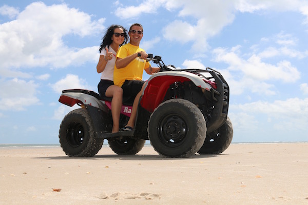 Tomamos de nuevo la barca para llegar a la Playa de Caburé. Aquí alquilamos un quad a un joven, recorrimos montados en él esta magnífica playa. Por 1 h nosotros pagamos 70 reales brasileños (19,43 € aprox.) Tenéis que negociar el precio y regatear, porque ellos ponen al principio unos precios muy altos.