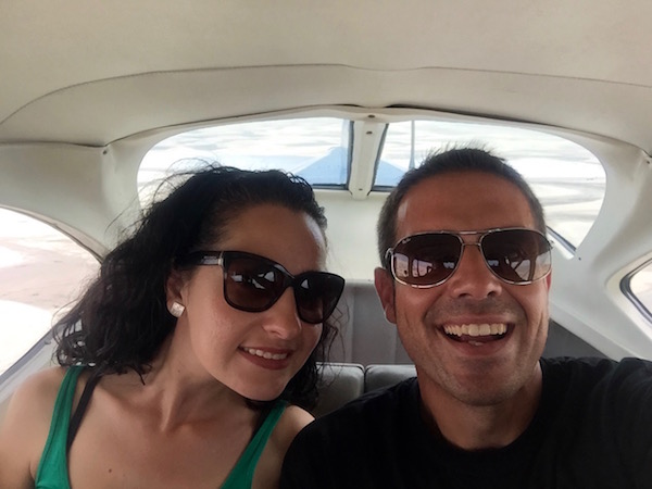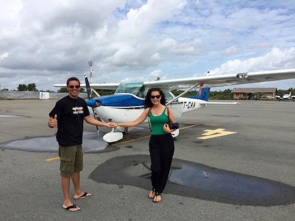 Donde tomamos una avioneta, nosotros dos y una chica brasileña, muy amable, por cierto lo preguntaba todo. Nos hizo gracia, porque el piloto que nos tocó era muy joven. La chica brasileña empezó a preguntarle al joven piloto ¿Cuántos años tienes?, ¿Cuántas horas has pilotado, hasta el momento?, ¿Alguna vez te ha pasado algo?, etc. No sabemos si Luciana tenía miedo, ¿sería su primera vez que se montaba en una avioneta?, o ¿es que la chica era así?