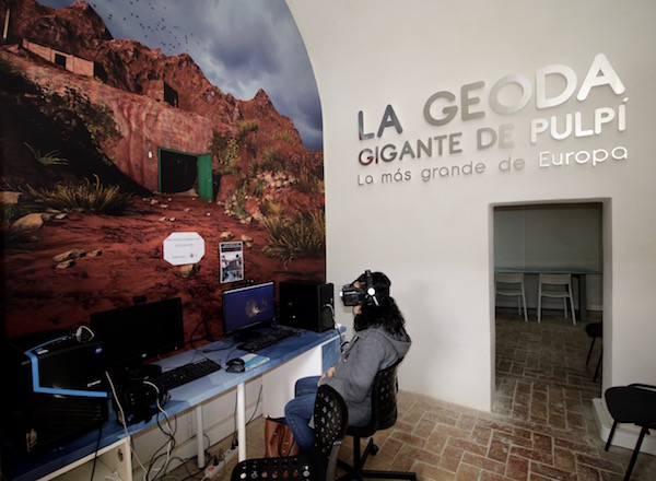 El Castillo de San Juan de los Terreros fue construido bajo el mandato de Carlos III, como fortaleza defensiva, par impedir los ataques de los piratas del Magreb, en el siglo XVIII. Se sitúa en lo alto de una colina, llamado el paraje natural de Isla de Terreros e Isla Negra. El horario de visitas los meses de julio y agosto de 18:00 h a 22:00 h y los sábados y domingos se amplía este horario de 10:00 h a 13:00 h La entrada al castillo es gratuita. En su interior pudimos ver la geoda de Pulpí, es la más grande Europa, tiene 8 metros de longitud y 2 metros de altura, con forma alargada, de yeso. Fue hallada en 1999, en el paraje del Pilar de Jaravía. Ha sido declarada Monumento Natural. Se puede hacer una visita virtual en 3D, donde se puede observar a través de unas gafas en 3D, haciendo un recorrido por una mina hasta llegar a la geoda de Pulpí, es una vista de 360 grados. Esta atracción tiene una duración de 7 minutos aproximadamente. La entrada para adultos tiene un coste de 2 € por persona, para estudiantes y jubilados cuesta 1 € por persona, niños menores de 8 años la entrada es gratuita. Horario de visitas en primavera e invierno los viernes de 16:00 h a 19:00 h, sábados, domingos y festivos de 10:00 h a 14:00 h, por la tarde de 16:00 h a 19:00 h. El horario de visitas en verano de lunes a domingo de 10:00 h a 14:00 h por la tarde de 17:30 h a 22:30 h. Se sitúa en el castillo de San Juan De Los Terreros.