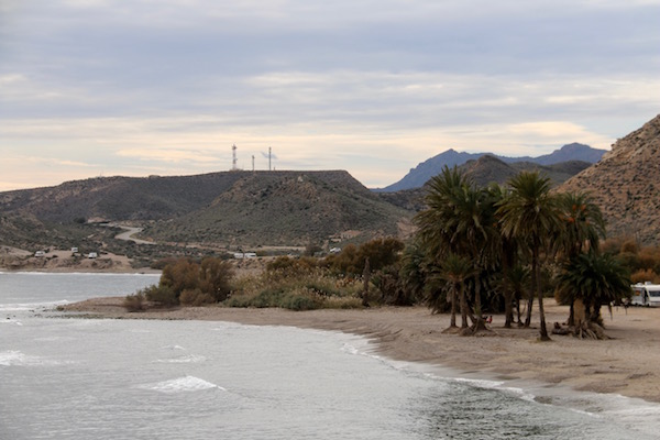 La Playa Las Palmeras con una longitud de 400 metros y con un ancho medio de 20 metros. Compuesta principalmente por grava y arena dorada, sus aguas son cristalinas y poco profundas. El nombre de la playa es debido por el conjunto de palmeras que hay frente al mar. Es una Playa aislada, con un nivel de ocupación bajo, ya que se encuentra en un entorno natural. Cuenta con aseos públicos, pasarelas de acceso para personas discapacitadas, papeleras, contenedores, servicios de limpieza y aparcamientos. ¡Recuerda!, se accede a pie, hay que dejar el coche estacionado al lado de la carretera. Situada en la desembocadura de la Rambla de los Arejos.