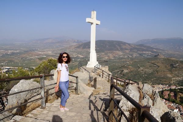 A lado del castillo de Santa Catalina hay un pequeño camino empedrado que nos llevó hasta a la Cruz, es una escultura de una cruz, fue mandada colocar en el punto más elevado de la ciudad de Jaén, como muestra de la conquista cristiana por el rey Fernando III, en 1246. La primera cruz fue de madera, permaneció durante siglos. En 1946 un viento la derrumbó, el pueblo subió y la restauró. En 1951, se encontraba muy deteriorada, fue sustituida por otra, esta de hormigón armado y de mayores dimensiones, siendo pagada por la familia Balguerías. Desde este mirador pudimos obtener unas vistas panorámicas de toda la ciudad y alrededores.