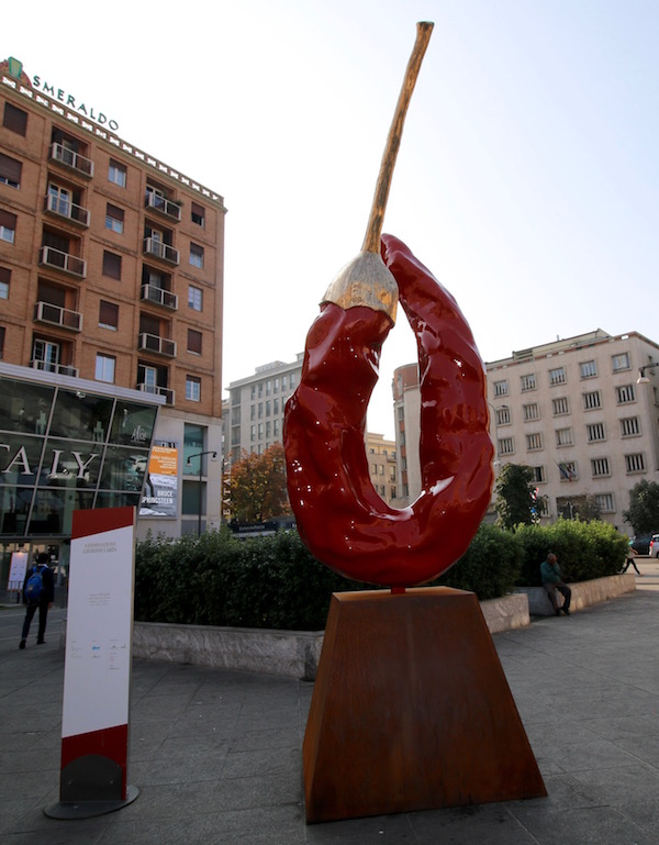 Bueno, el día parece que iba de puertas, la siguiente puerta que nos encontramos fue la Puerta Garibaldi grandiosa puerta, al cruzarla al lado derecho pudimos ver la escultura de Capsica Red Light fue colocada en el año 2016, representa a pimiento picante rojo con unas dimensiones de 4,5 x 1,85 x 0,70 metros.