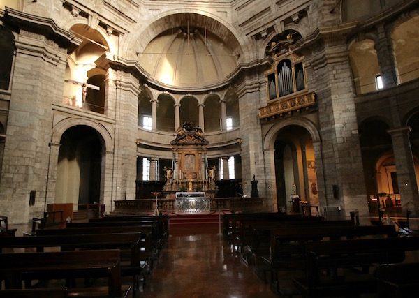 Más adelante vimos la Basílica de Santo Eustorgio, la primera iglesia que se construyó en el lugar fue en el siglo IV, en honor de San Eustorgio (obispo de Milán) En el año 1164, cuando Federico Barbarroja invadió Milán saqueó la iglesia y la destruyó casi por completo. Este templo ha sido en muchas ocasiones restaurado, reconstruido, etc. Hoy en día presenta un buen estado de conservación. Bajo el altar se encuentra los restos de San Eustorgio. Horario de lunes a sábado de 7:45 h a 17:00 h, el domingo de 9:30 h a 11:00 h y de 12:30 h a 17:00 h. Visitas al Museo de San Eustorgio y Capilla Porinari tiene un coste de 6 € por persona. Abierto todos los días de 10:00 h a 18:00 h.