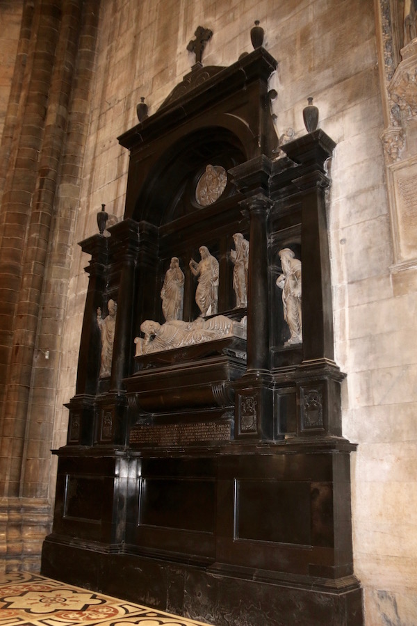 Nos levantamos a las 7:00 h, bajamos a desayunar al comedor del hotel, teníamos incluido el desayuno. Para 7:40 h, ya empezamos a andorrear la ciudad. Llegamos hasta el Duomo, ya había gente tomando fotografías en el lugar. Había cola para sacar la entrada, tardamos 30 minutos en sacar la entrada y una vez sacada la entrada hay que hacer otra cola para acceder al interior. Al final tuvimos que esperar 1 h, para acceder al templo. Antes de entrar te hacen pasar un detector de metales, abren mochilas, bolsos, hay que tener en cuenta, que es obligatorio llevar las rodillas cubiertas y los hombros para poder visitar la catedral, no permiten llevar trípode, en el museo está prohibido hacer fotografías. La catedral es un templo católico comenzado a construir en el año 1386, la construcción fue acabada cinco siglos después. En el punto más alto podemos ver la estatua de cobre dorado conocida como Madonnina, se ha convertido en símbolo de Milán fue creada en el año 1774 por Giuseppe Perego.