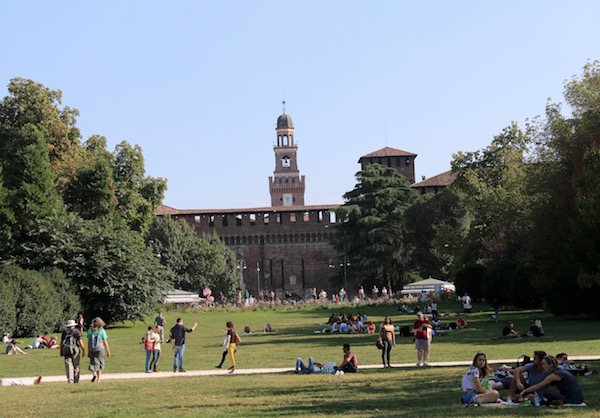 Una vez terminado el almuerzo nos fuimos caminando hasta llegar al Parque Sempione es un enorme parque urbano con una superficie de 47 hectáreas, fue construido entre 1890-1893 con estilo de jardines ingleses. Cuenta con una gran cantidad en especies vegetales, un lago artificial, edificios como: la Trienal, el Acuario Cívico, el Arco della Pace. Es un lugar muy transitado donde podrás ver como la gente va a pasar un rato rodeado de naturaleza. La entrada es gratuita. Abierto todos los días de 6:30 h a 21:00 h.