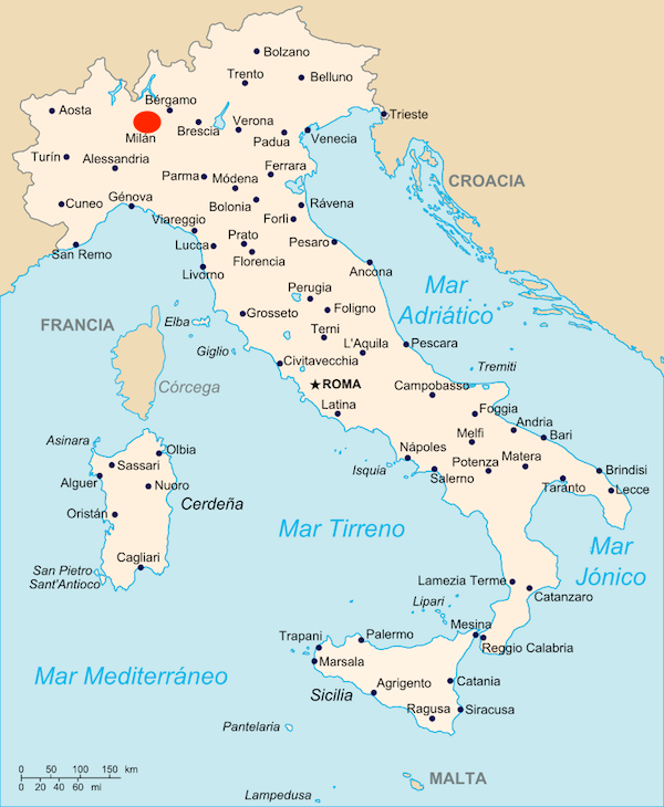 Milán se encuentra a 52 km del Aeropuerto de Orio al Serio. Ya llevamos nuestras tarjetas de embarque imprimidas, no teníamos que facturar equipaje, pasamos el control de seguridad y a esperar a que nos pusieran en los monitores la puerta de embarque para nuestro vuelo operado por la compañía aérea Ryanair. Comenzamos el embarque, tomamos el asiento, el vuelo tuvo una duración de 2 h. Aterrizamos en el Aeropuerto de Alicante-Elche. Salimos del aeropuerto para dirigirnos hacia el parking de larga estancia donde teníamos estacionado el vehículo. Pusimos rumbo hacia casa, tuvimos un trayecto en coche de 2 h y 56 minutos, unos 315 km.