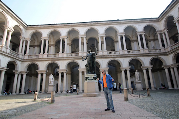 A pocos metros del lugar se encuentra la Pinacoteca di Brera creada por los jesuitas sobre el antiguo monasterio de Santa María di Brera Humiliati, construyendo un centro cultural con escuela, observatorio astronómico, biblioteca. En el año 1773 María Teresa de Austria (emperatriz) fundó en el lugar una academia de bellas artes. Es un museo que muestra obras ordenadas y agrupadas según la escuela que pertenece, comprendidas en 38 salas. Podemos destacar la colección de pinturas italianas. La entrada tiene un coste de 10 € por persona. Horario de apertura los lunes permanece cerrado, martes, miércoles, viernes, sábado y domingo de 8:30 h a 19:15 h, los jueves de 8:30 h a 22:15 h. Se sitúa en el interior del Palacio Brera, Via Brera 28.