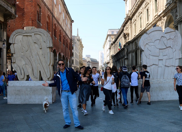 Hicimos una parada para almorzar en un restaurante donde probamos unas deliciosas pizzas. Una vez terminados de almorzar, retomamos la ruta para seguir andorreando la ciudad de Milán. Pasamos por la Vía Fiori Oscurio donde pudimos ver colgado de la calle figuras siluetas de la moda, y no es para menos, estábamos ¡en la ciudad de la moda!