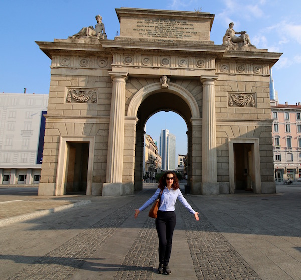 Lo siguiente que fuimos a ver fue la Puerta Nueva construida entre el año 1810-1813. Antiguamente, había una puerta romana que era el punto de entrada en las murallas de la ciudad se encuentra en Porta Nuova en un barrio al norte de Milán.