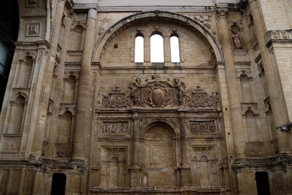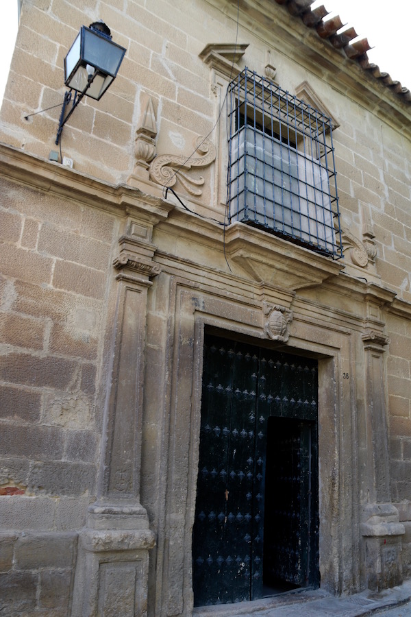 Lo primero que visitamos fue el Palacio de Jabalquinto, mandado construir por Juan Alfonso de Benavides Manrique a finales del siglo XV. En 1720 dejó de ser la residencia señorial para convertirse en residencia estudiantil del seminario San Felipe Neri, reservando algunas estancias a sus fundadores. En 1836 el inmueble paso al Estado. En la década de 1970 tuvo la función de Colegio Menor y los años noventa se transformó en la sede de la Escuela Taller de Rehabilitación del Patrimonio de Baeza. Hoy en día es la sede Internacional de la Universidad Antonio Machado. La puerta de entrada está enmarcada por enormes pináculos góticos. En su interior pudimos ver su patio central del siglo XVI de estilo renacentista con doble arcada con columnas de mármol y escudos, presidida por una fuente. Tiene una escalera barroca llamativa por sus decoraciones y su bóveda de media naranja. El acceso es gratuito. Horario de visitas de lunes a viernes de 9:00 h. a 14:00 h. Aunque cuando nosotros lo visitamos estaba abierto y era domingo. La dirección Plaza de Santa Cruz.