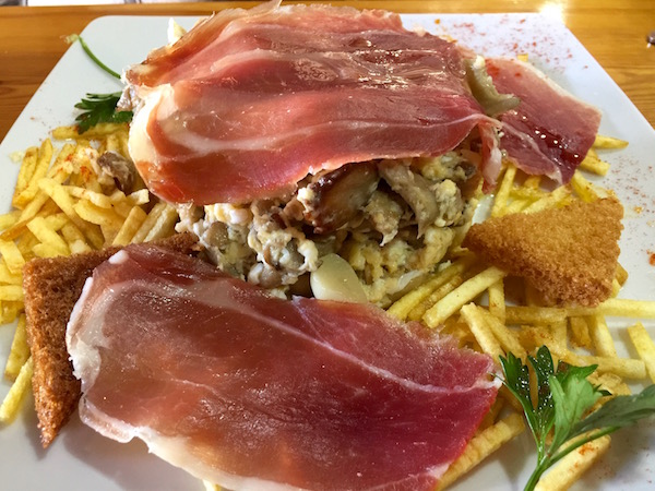 Almorzamos en el Restaurante el Mesón Navarro, donde pedimos una pipirrana de bacalao, un revuelto de setas con jamón y un plato de pulpo braseado, de bebida una coca cola y un nestea, de postre dos cafés. Pagamos un total de 41,60 €. La comida buena, el servicio fue rápido en atender y estaba lleno. La dirección es Plaza del Ayuntamiento nº 2.