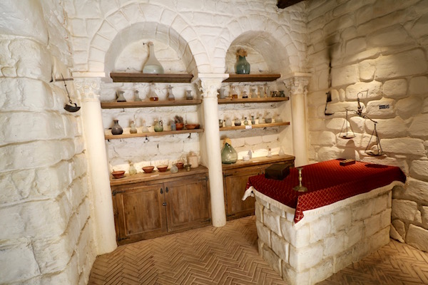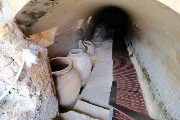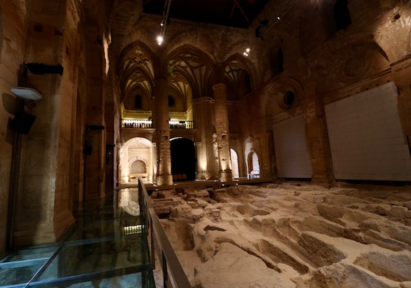 Continuamos hasta llegar a la Puerta Peso de la Harina, como podéis leer ya habíamos cruzado tres puertas y aún no habíamos llegado al centro de la ciudadela. Fueron astutos en su construcción en aquellos tiempos, ¡verdad! Nos adentramos en la plaza Baja, aquí encontramos la botica, una habitación donde había remedios utilizados para curaciones medicinales, a la salida del inmueble pudimos apreciar el trazado urbano mostrando las huellas de calles y casas del pasado de urbanístico medieval, además de ver las casas y bodegas de los siglos XV a XVIII. La alcazaba, fortificación militar que tiene un patio de armas con tres torres. Este recinto amurallado situado dentro de la ciudadela, su entrada es de doble recodo. Pasamos por la vivienda, una de las más importantes de la fortaleza, debido a su tamaño, pórtico, abrevadero y pesebres, nos detuvimos a contemplar desde arriba un aljibe que sirvió como depósito para almacenar agua en aquella época. Ahora si llegamos hasta la grandiosa Iglesia Mayor Abacial, fue construida entre 1517-1627, obra de los maestros Martín de Bolívar, Ginés Martínez de Aranda y Ambrosio de Vico, etc., edificio renacentista, llamativa por las gárgolas y pináculos que la rematan y la torre de 42 metros de altitud que tiene. Nos adentramos en ella y pudimos apreciar las grandes dimensiones que tiene, dentro están los restos romanos, visigodos y musulmanes que se han encontrado en excavaciones arqueológicas. A las 16:00 h, nos proyectaron un vídeo con la historia de la fortificación. Los horarios pueden variar, preguntar al personal que trabaja en la fortificación. ¡No debes perdértelo!, es muy interesante. A nuestra salida de la catedral comenzaron a caer unas gotas de lluvia.