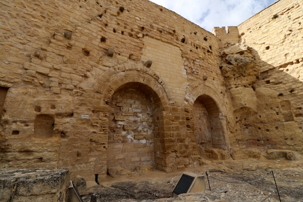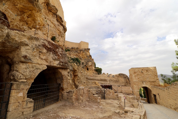Con esta pequeña explicación tocaba el momento de estacionar el coche en la zona parking y emprender una pequeña caminata hasta llegar a la taquilla de la fortaleza, para mostrar el ticket y registrarnos. Ahora sí tocaba el momento de cruzar sus puertas y hacer un viaje en el pasado. Accedimos por el acceso principal de la ciudadela por la puerta de las Lanzas, donde nos detuvimos unos minutos para contemplarla y continuamos caminando unos metros hasta llegar a la puerta de la Imagen, al cruzarla vimos los restos del barrio del Albayzín, las carnicerías lugar de actividad comercial en el siglo XVI, hoy en día es posible de ver parte de la red de saneamiento de la ciudad.
