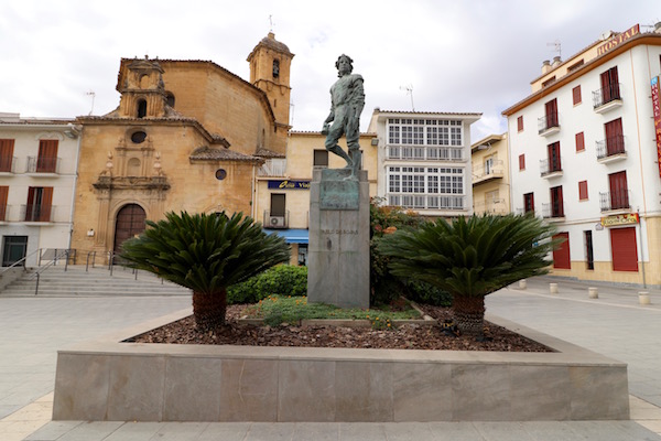 Justo delante del templo está colocada la escultura de Pablo de Rojas, artista, escultor imaginario, nacido en Alcalá la Real, fue el maestro de Juan Martínez Montañés, estableció su taller en Santiago. Este monumento que podemos ver hace homenaje a su trayectoria, ha sido realizado en bronce por el escultor granadino Ramiro Megías. Siendo inaugurada en noviembre del 2006. Situado en el Paseo de los Álamos.